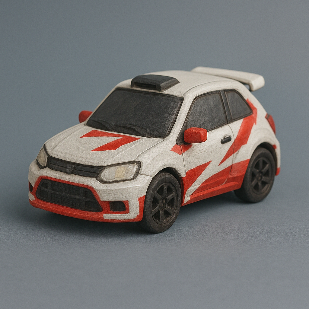 Kompakt formu, kaputtaki hava girişi ve yükseltilmiş arka kanadıyla ralli ruhunu masaüstüne taşır. Beyaz-kırmızı kontrastlı boya ve dokulu yüzey, modele enerjik ve sportif bir görünüm verir. Dayanıklı malzemesi ve özenli işçiliğiyle ofis, oyun köşesi ve vitrin sergileri için ideal bir koleksiyon parçasıdır.